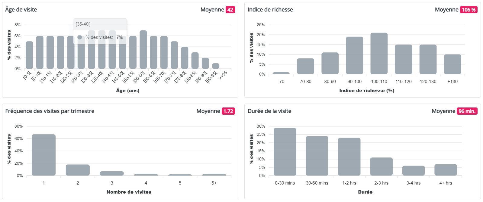 Cela permet de mieux comprendre le profil des visiteurs (en termes d’âge et d’indice de richesse), leur fréquence de retour et le temps qu’ils passent sur place.