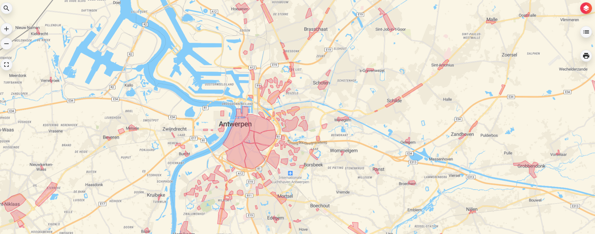 Remarque : Les zones commerciales couvertes (comme les centres commerciaux) sont indiquées comme « Intérieur ».